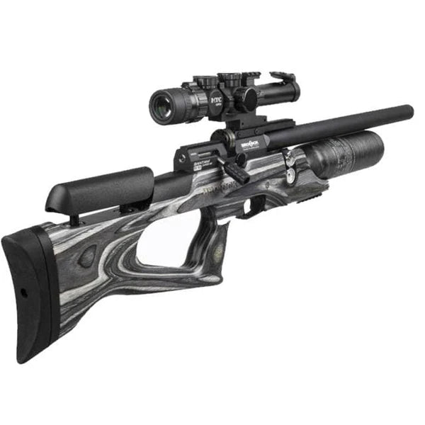 The new Laminate stock of our Bantam is the result of a perfect balance of black, dark & light grey: a unique design to transform a high performing Airgun.