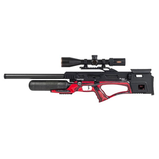 Whilst complementing its Delta Wolf bullpup sibling, Alpha Wolf’s individuality is immediately obvious courtesy of a beautifully sculpted, red laminate stock with extended forend lip and new-look Picatinny optic rail that is fitted with an anti-cant bubble.