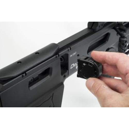 The Delta Wolf is available with 430 and 600mm ART developed barrels. A 30mm diameter carbon shroud reduces muzzle blast considerably and the addition of a 0db silencer makes the rifle almost silent. Additional barrel kits can be bought to change the calibre. A calibre swap takes just five minutes including switching power programs.