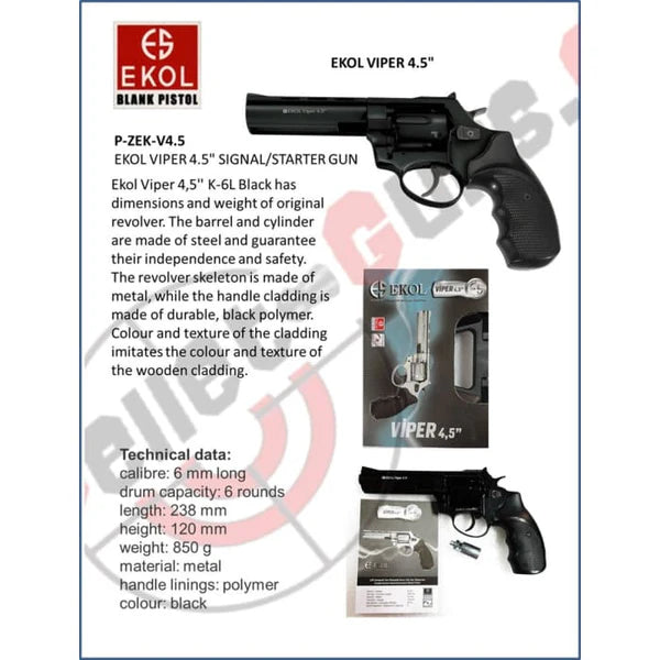 Ekol Viper 4.5’ 9mm PAK Signal/Starter Gun