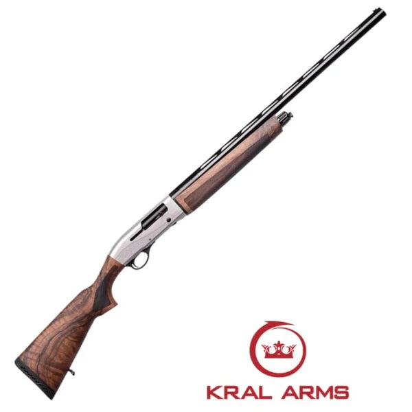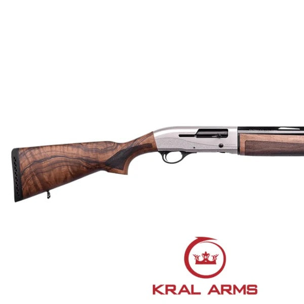 The Kral Arms Azarax E200 is a semi automatic shotgun. The stock is crafted from high-quality Turkish walnut, polished and varnished. The shotgun comes with 3 interchangeable chokes: Full, Modified and Improved cylinder.