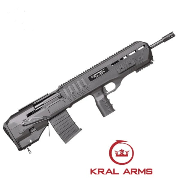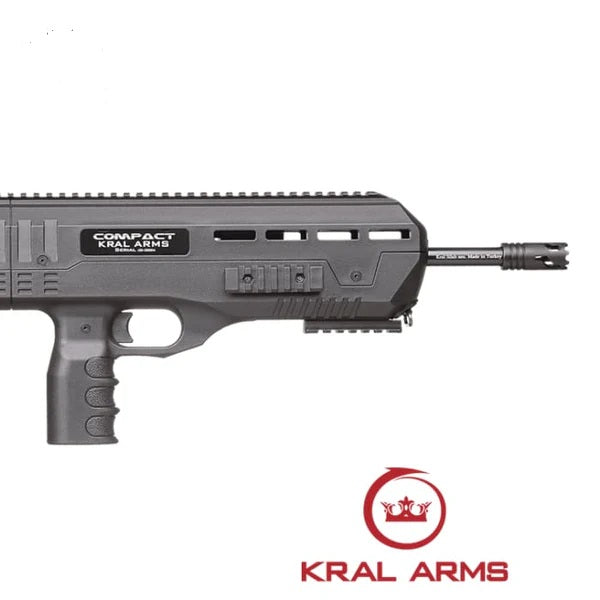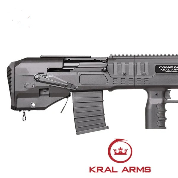 The Kral Arms Compact is a 12-gauge magazine fed semi-automatic Bull-pup design shotgun. It is designed for tactical and home defense applications. Its compact dimensions and robust construction make it suitable for close-quarters scenarios where manouverability and reliability are paramount.